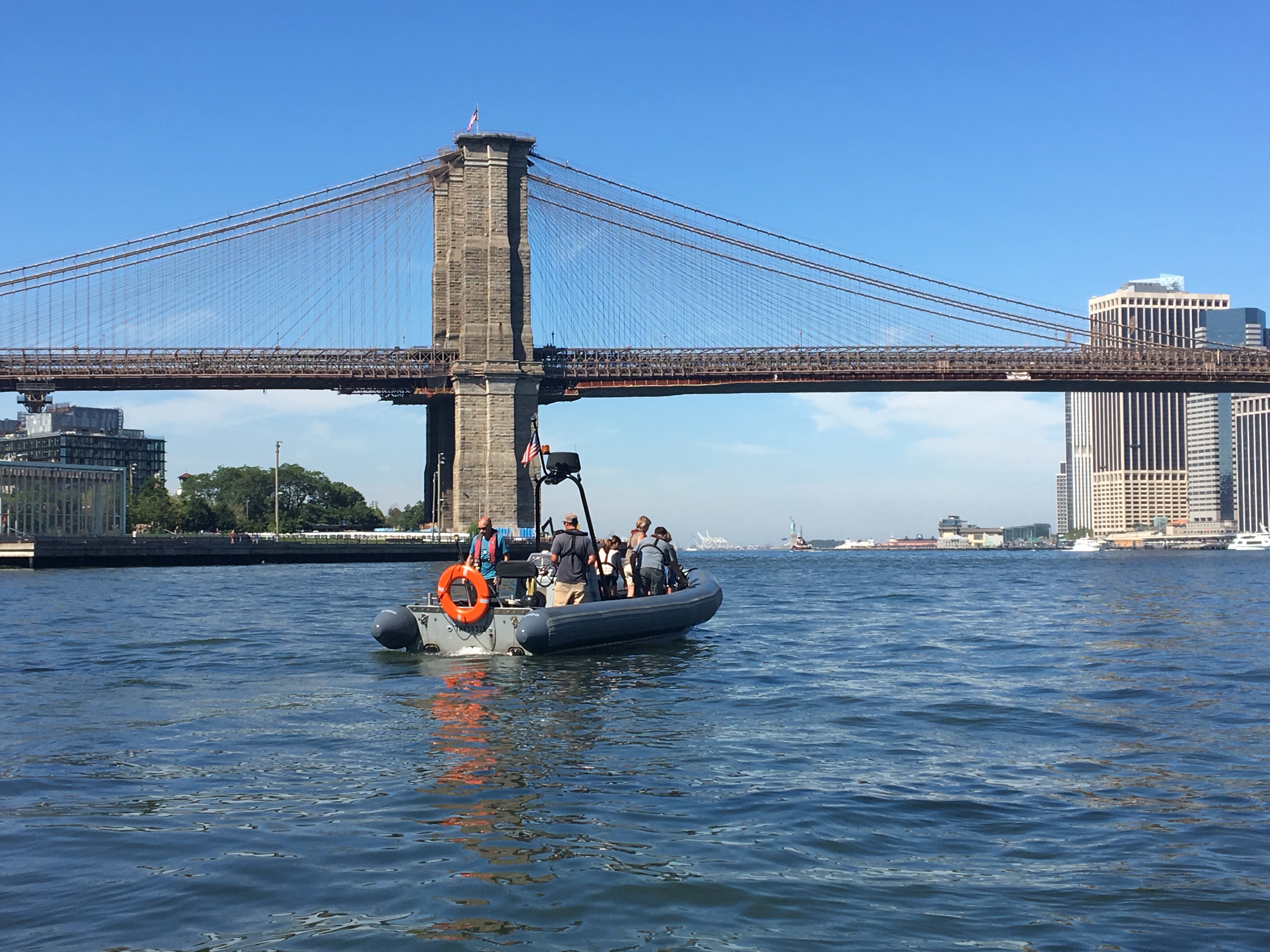 Если вас не устраивает ” колхозный” вариант, то есть возможность индивидуального плавания по реке Гудзон и Нью Йоркской бухте на 6 – ти местном катере, который используется “морскими котиками” в американской армии. Лодка хоть и надувная, но способна не опрокидываться на волнах высотой с 9-ти этажный дом.В течении 90 мин. вы сможете лицезреть и сфотографировать Статую, Даунтаун( Уолстрит), Бруклинский мост, 42 улицу. Промчавшись по волнам и получив заряд адреналина, капитан останавливает лодку и дает возможность пофотографироваться. Причем остановки сопровождаются кратким информационным всбросом.